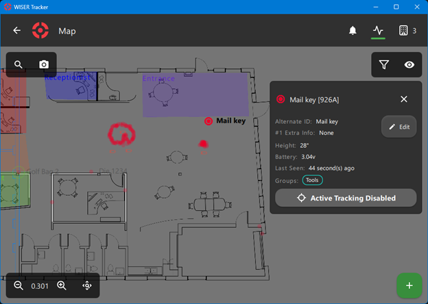 First, we will need to set up those groups and zones on the map. I want tags that enter the “Entrance” zone (in purple to be assigned to the “Status Shipping” group. Except the mail key, which is already in the “Tools” group; we really should not ship that.