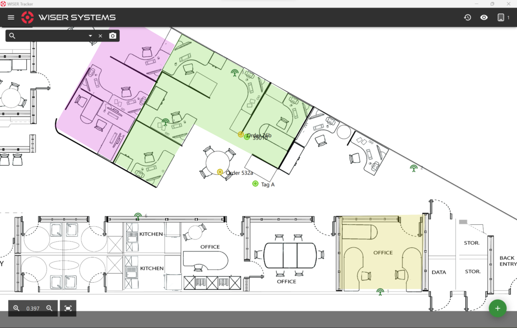 Users can visualize real-time location data through the WISER Tracker App on desktop or mobile, gaining immediate asset visibility on facility floorplans, tracking histories, and zone-based views.